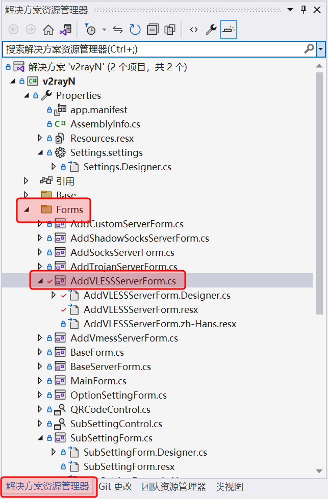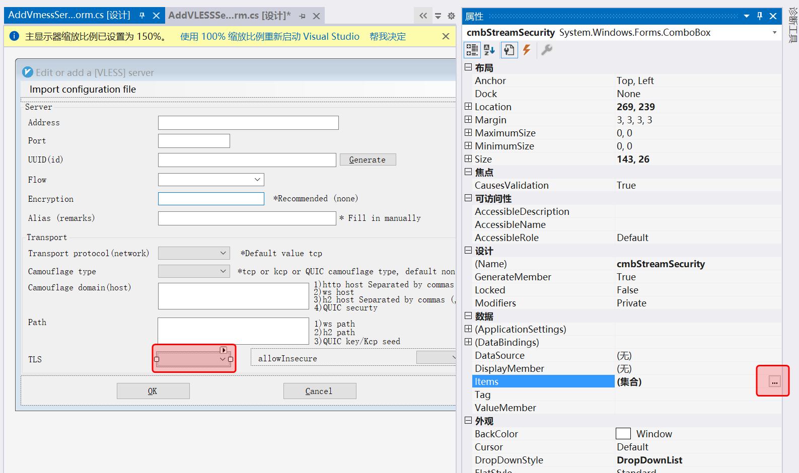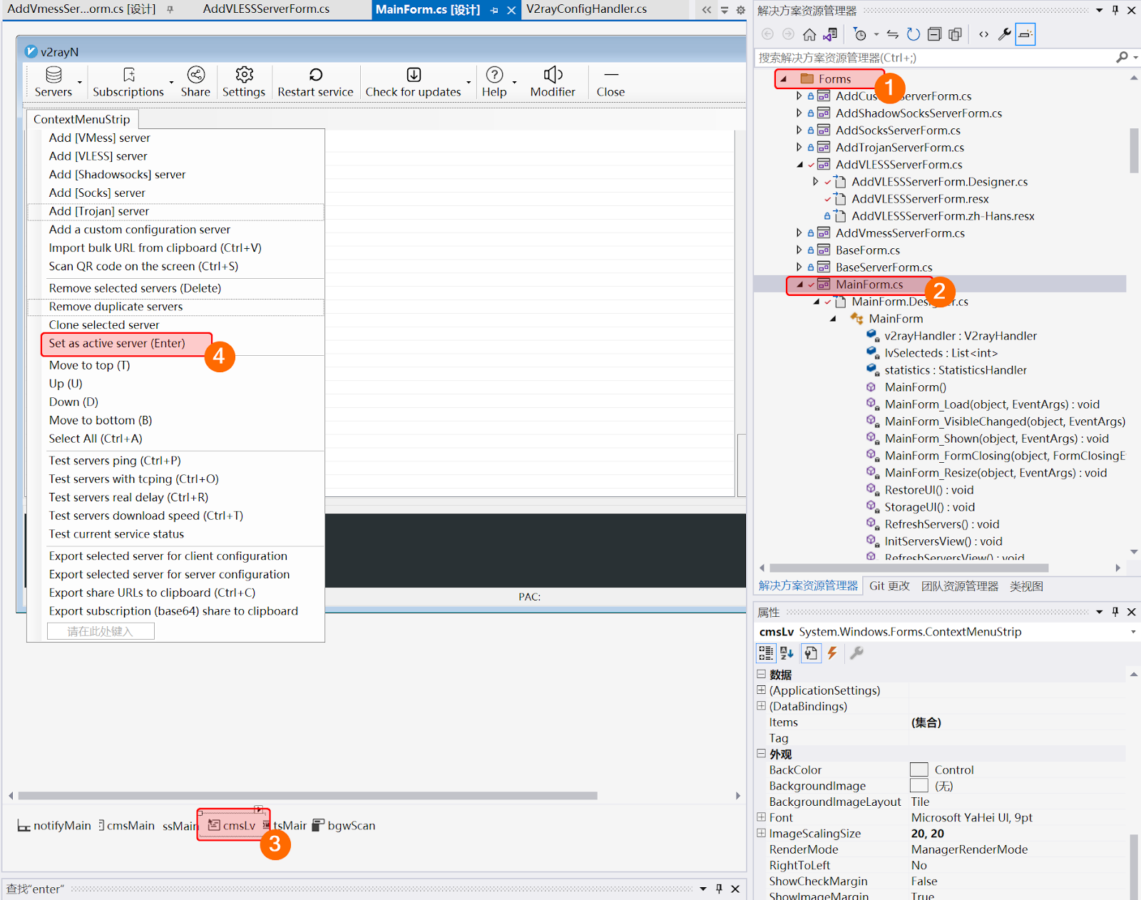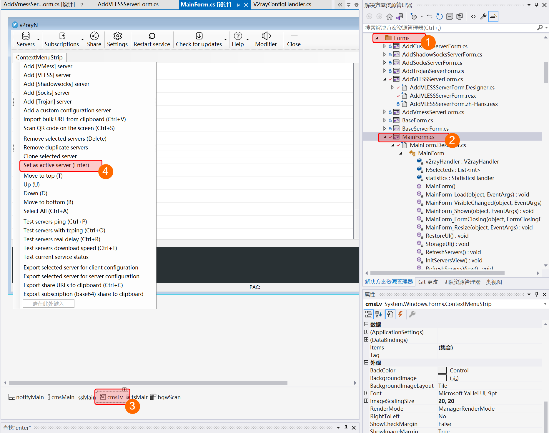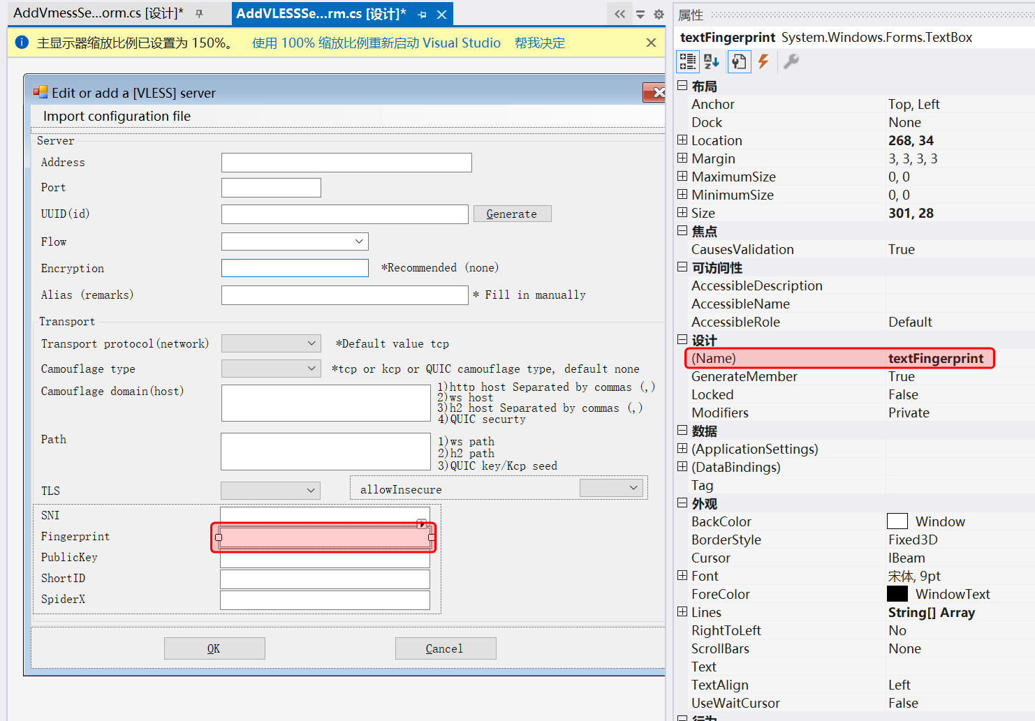 先查初始化函数, 在 AddVLESSServerForm_Load 函数里面有一个 BindingServer, 逻辑很简单, 就是把数据"绑定"到界面元素上去, 给界面元素赋值.