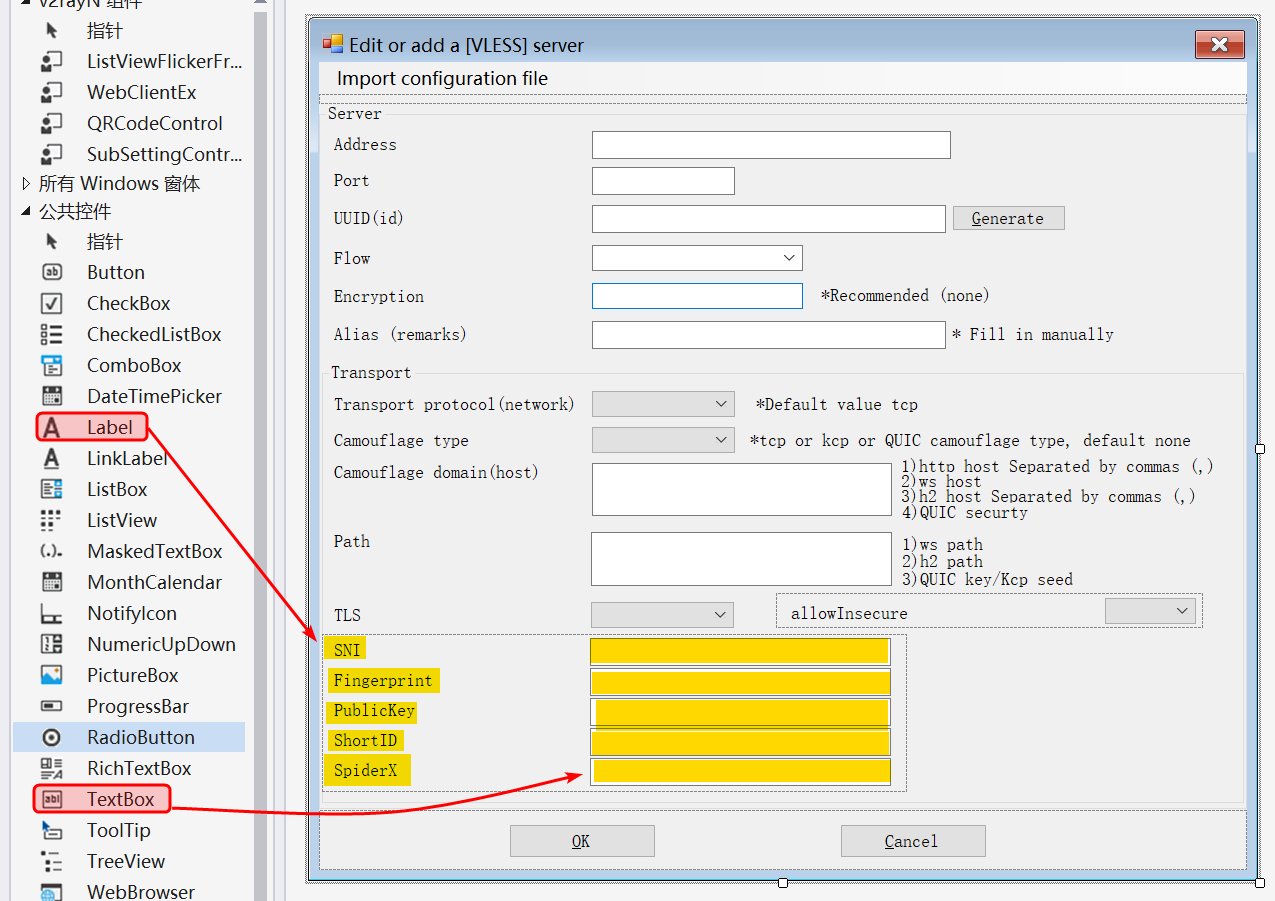 VLESS窗口的OK按钮保存的时候, 将Reality相关的参数保存下来