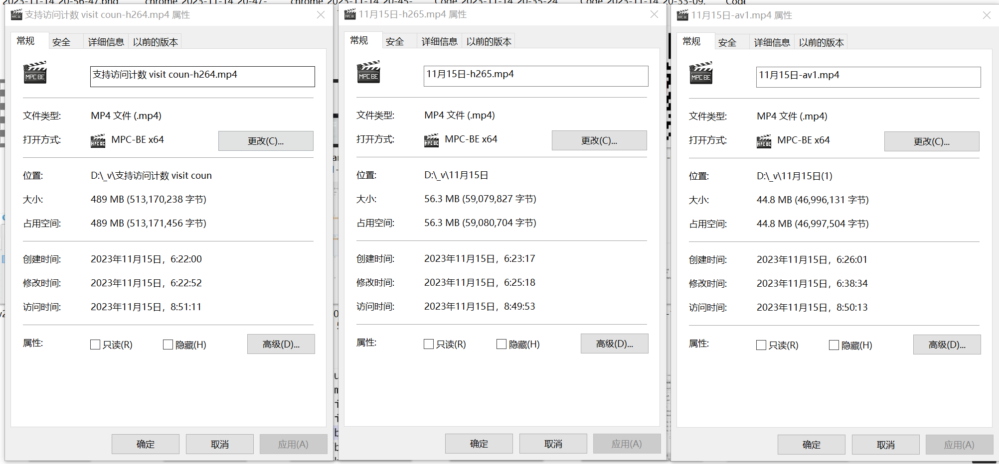 4 分 17 秒 的 1080p 视频, H264, H265, AV1 对比如下:
