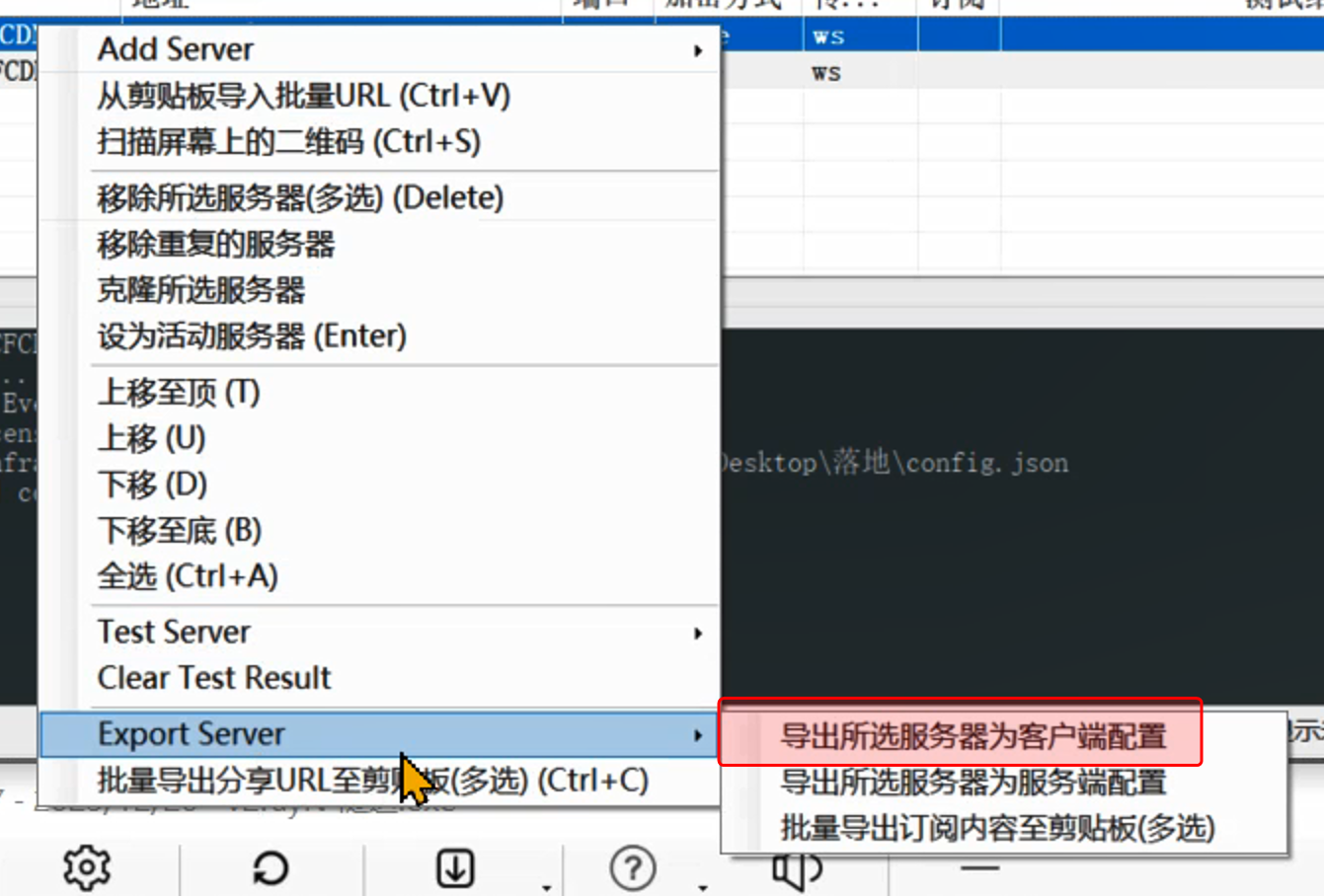 (3) 落地节点右键菜单导出客户端配置(.json文件)