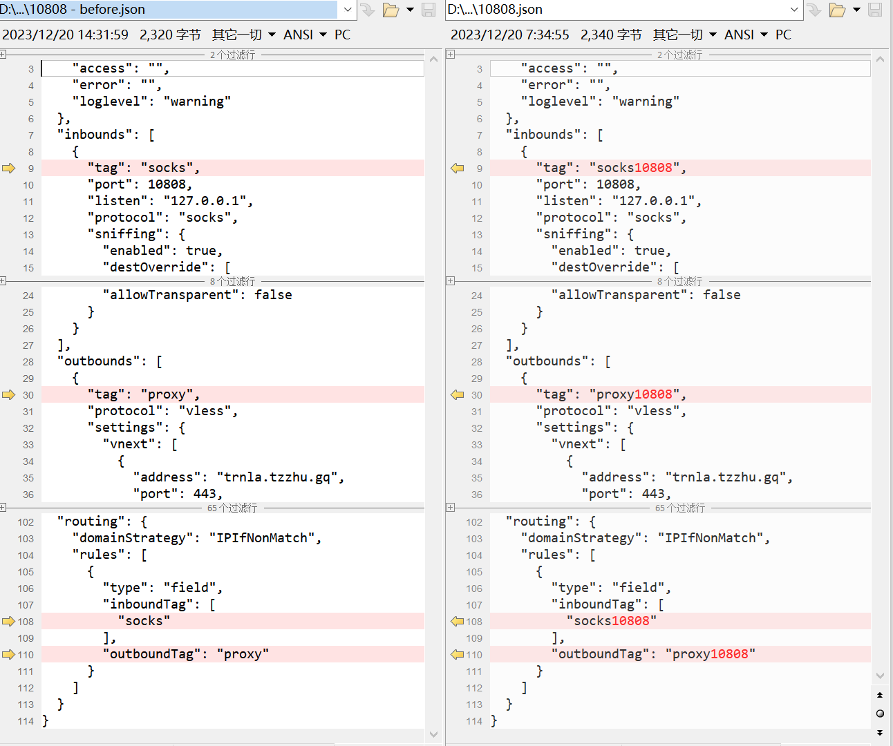 再加上 v2rayN-VLESS 小改一下, 配置文件里明确指定inbound和outbound的routing关系.
