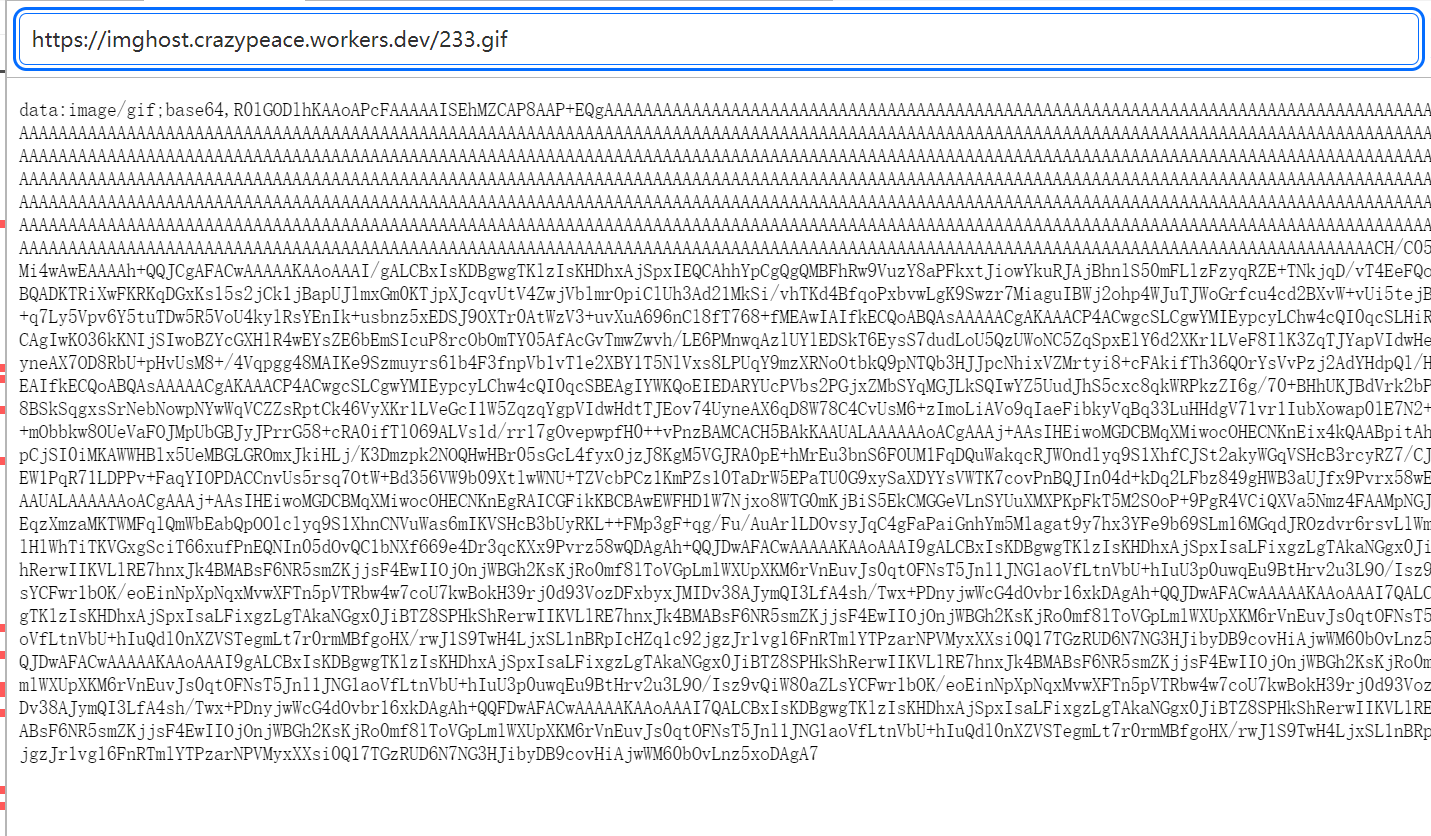 保存之后, 我们可以通过233.gif再获取这些base64数据, 像这样:求助 GPT, 得到下面这段代码来把 base64 数据转化为一个图片返回给http请求.把这段代码的函数添加到worker.js