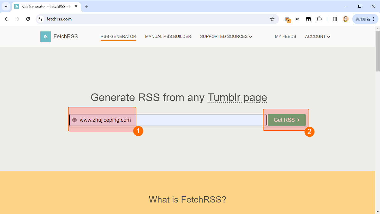 输入你要生成RSS的网站, 以 www.zhujiceping.com 为例