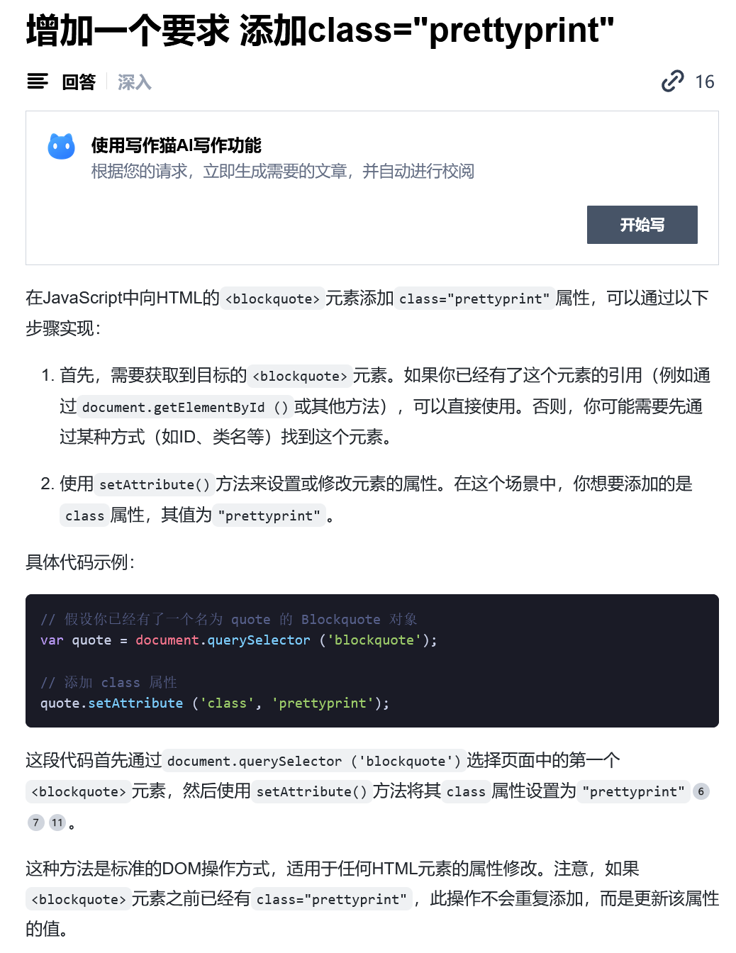 加载一个JS脚本, 把<blockquote>转换为<pre class="prettyprint">
