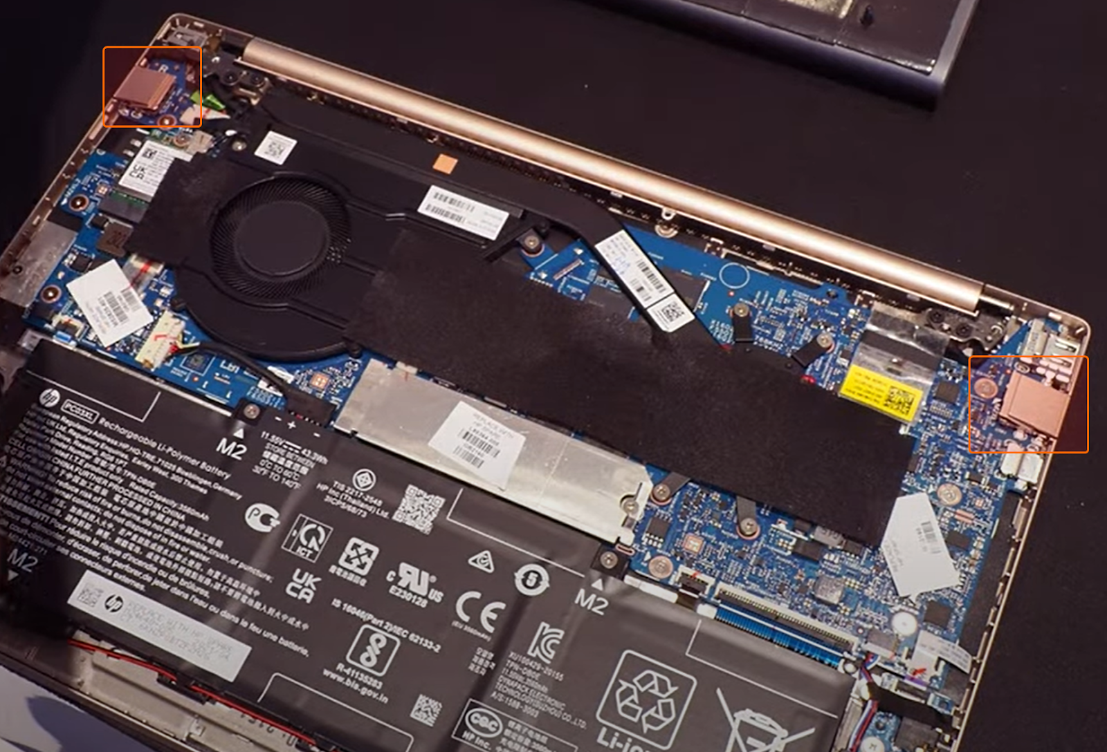 划到USB-A口附近时, 要知道USB-A口整体是连在主板上的.