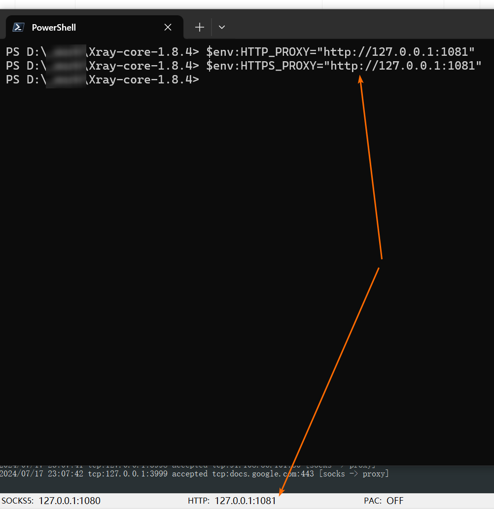 $env:HTTP_PROXY="http://127.0.0.1:1081"$env:HTTPS_PROXY="http://127.0.0.1:1081"