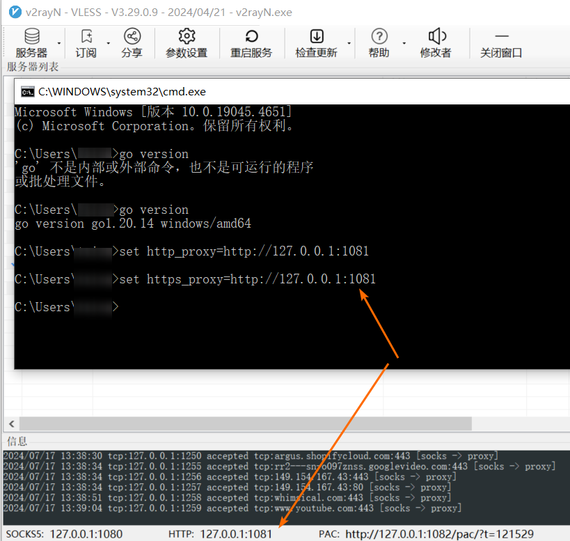 set http_proxy=http://127.0.0.1:1081set https_proxy=http://127.0.0.1:1081