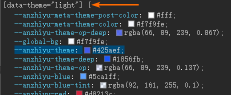 而且, 这个颜色"CSS变量"位于: [data-theme="light"] 这个"组"