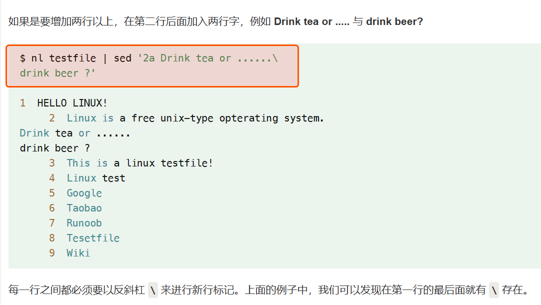 我想写文的原因是, 如何使用sed添加多行文本, 写在一行命令里.