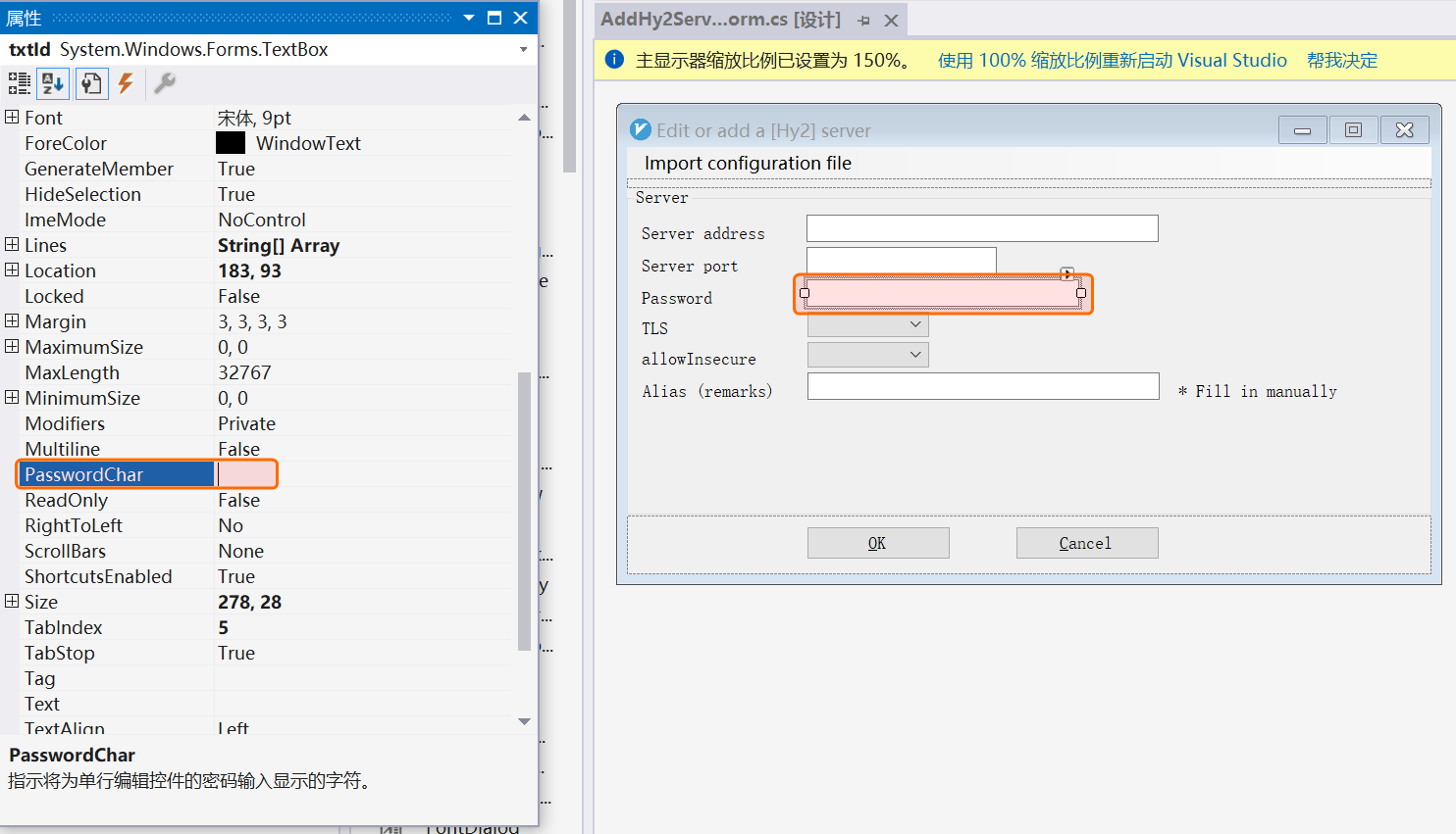 打开 窗口设计器, 选择 密码 元素, 修改 PasswordChar 属性, 从 * 改为 清空 就行了.