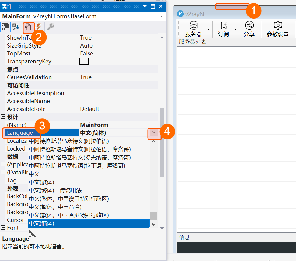 v2rayN-3.29-VLESS 菜单项中文资源修改 .net 4.8项目多语言资源