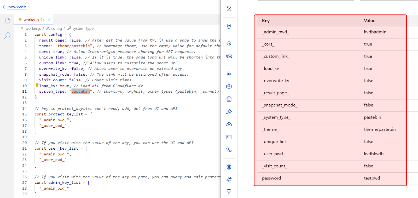 把 worker.js 里面的值当作默认值, 当KV中没有设置时, 维持程序运转.