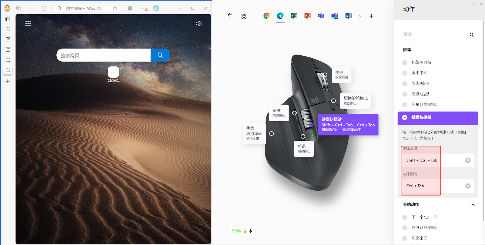 让Logi MX Master 3S的拇指滚轮与Edge浏览器的垂直tab配合