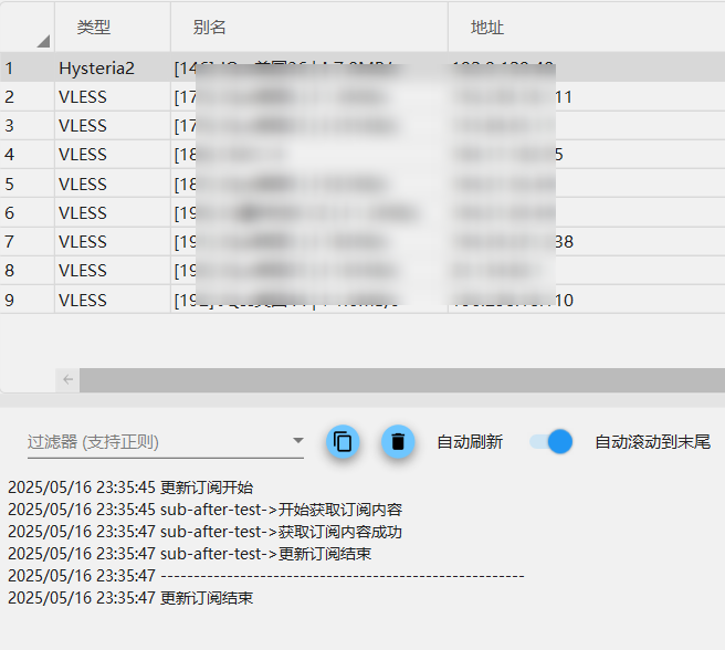 把这些 base64 复制粘贴到 v2rayN 中, 是可以看到筛选后的10个节点的.