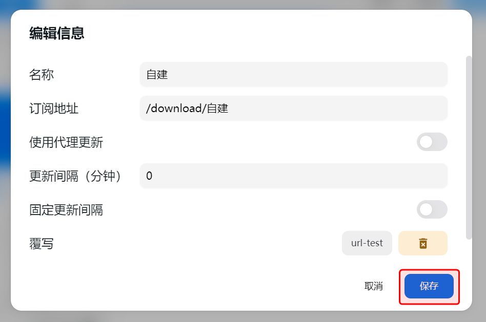 * 其中,  url 这一条, 是我发现我的vps如果用默认的测试链接(gstatic)总是测试失败. 你可以先不加这一条试试.