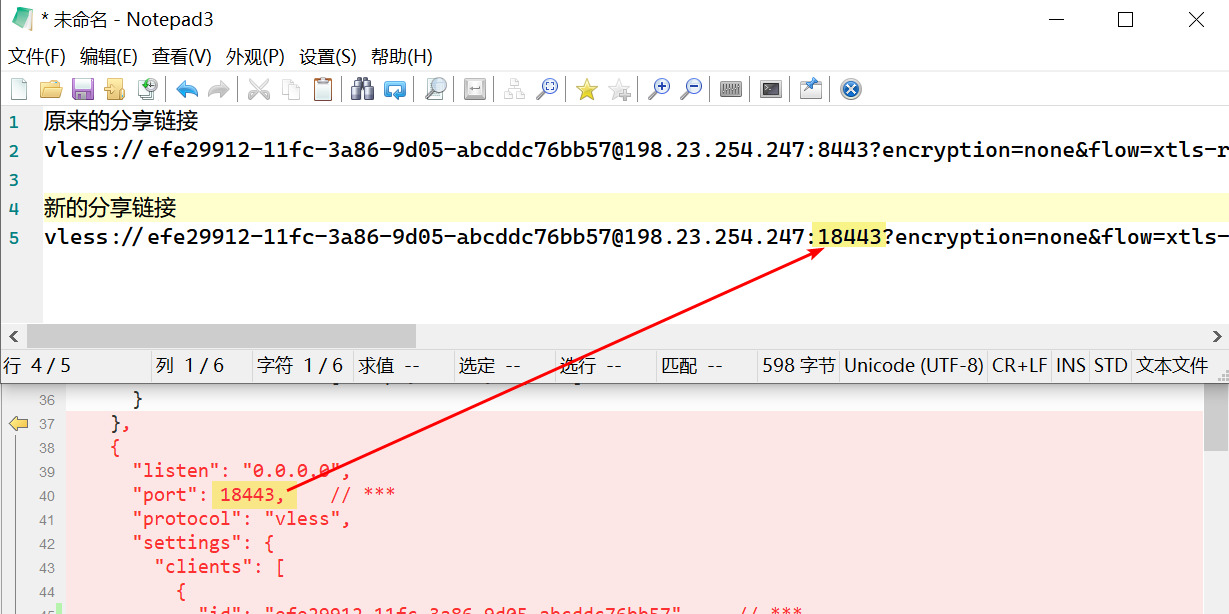 在原来的分享链接的基础上, 你只要修改端口的部分.