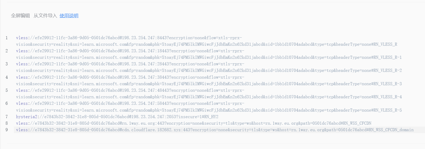 Reality, Hy2, WSS 节点分享链接都一起丢进去.