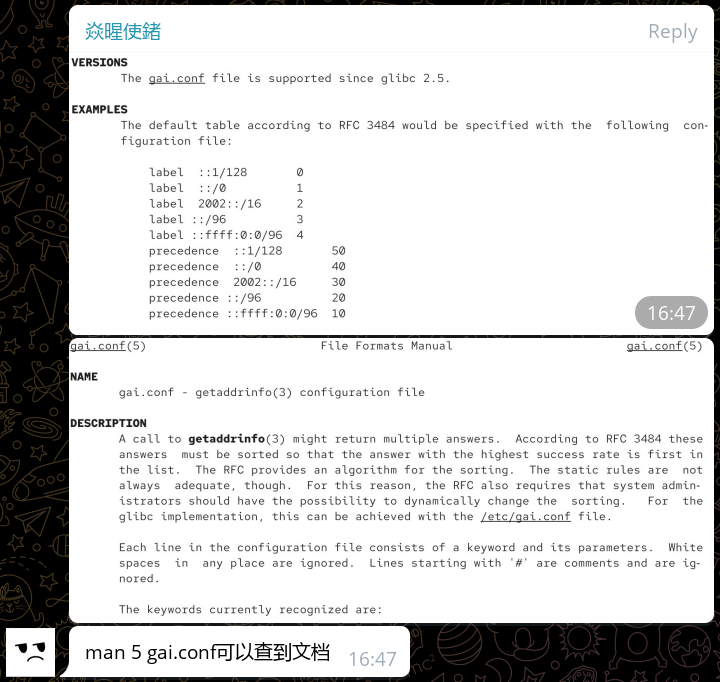 我们知道了, gai.conf 控制的是 getaddrinfo 系统接口的行为