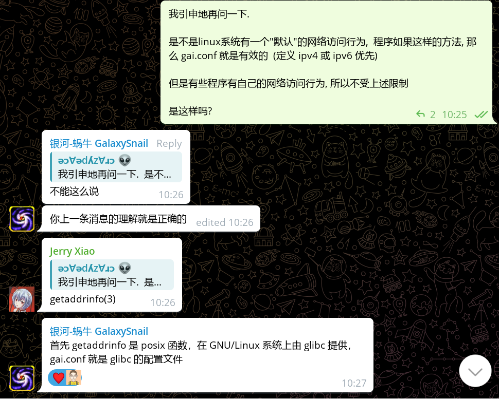 这样就可以确定某个软件 是不是 调用了 getaddrinfo , 于是就受到 gai.conf 的控制 (IPv4优先 / IPv6优先).