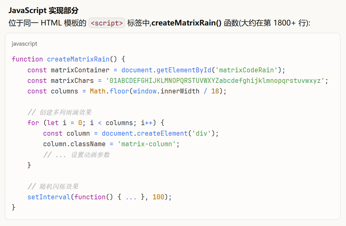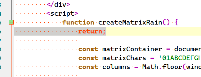 在代码中搜索 createMatrixRain 找到这个函数, 在函数的开头添加一个 return, 让函数提前结束.