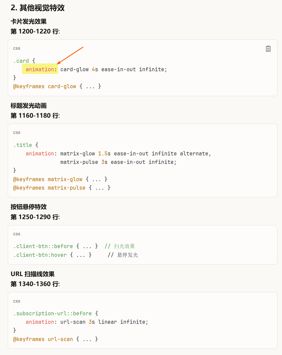 发现 path/UUID 页面的卡片上还有一些动效, 像是高光扫过平面一样.继续看GPT的回答,