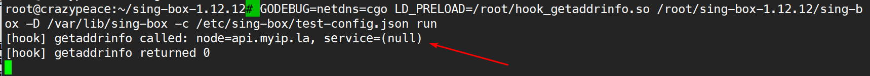 GODEBUG=netdns=cgo LD_PRELOAD=/root/hook_getaddrinfo.so /root/sing-box-1.12.12/sing-box run -D /var/lib/sing-box -c /etc/sing-box/test-config.json run