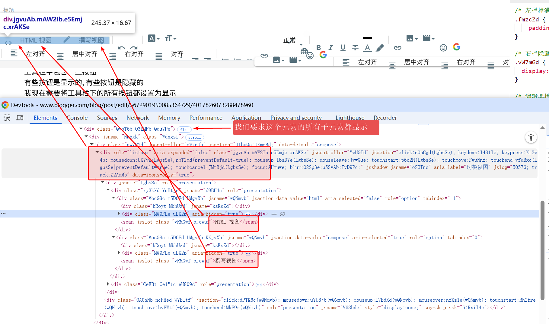 用Stylebot插件 修改blogger编辑器页面 显示被折叠的工具栏按钮