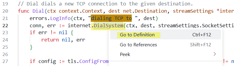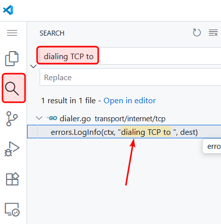这就是xray打印日志的地方了.https://github.dev/XTLS/Xray-core/blob/b69a376aa1b61ad94c9c05b2c2cd263567b8cc23/transport/internet/tcp/dialer.go#L21