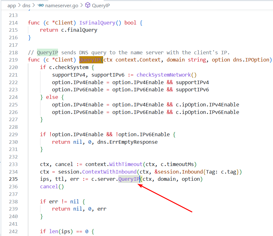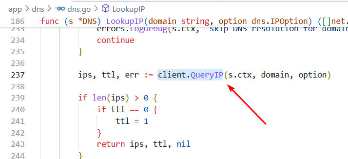https://github.dev/XTLS/Xray-core/blob/b69a376aa1b61ad94c9c05b2c2cd263567b8cc23/app/dns/dns.go#L186
